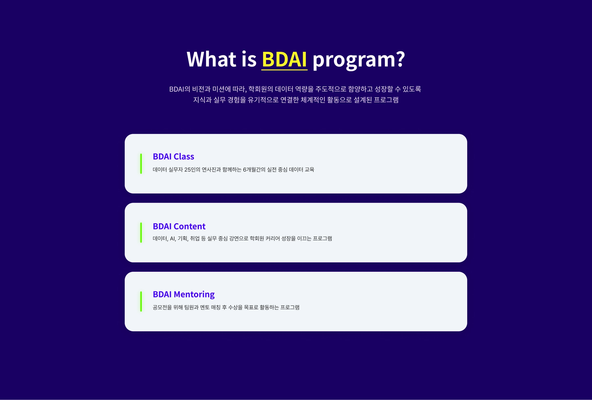 BDAI의 Program을 확인해 보세요.