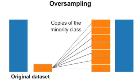 가장 간단하게 소수 클래스의 기존 샘플을 무작위로 복제하여 데이터 세트의 크기를 증가시키는 방법이 있을 것이다. 즉, 새로운 데이터를 생성하는 것이 아닌 기존의 소수 클래스 데이터만 많아져서 비율을 맞추는 방법이다. 가장 단순한 방법이지만, 기존의 소수 데이터의 양만 증가하므로, 소수 클래스에 대한 과적합이 발생할 가능성이 커진다는 단점이 있다.