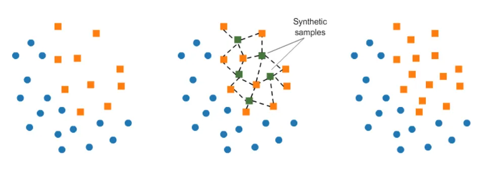 기존의 소수 클래스의 샘플을 무작위로 복제하여 클래스 비율을 맞추면 소수클래스에 대한 과적합이 발생할 위험이 있었다. 이에 대한 대안으로, SMOTE는 소수 클래스에 대한 새로운 데이터를 생성하는 방법이다.