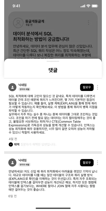 사용자는 현직자에게 직접 질문하고,