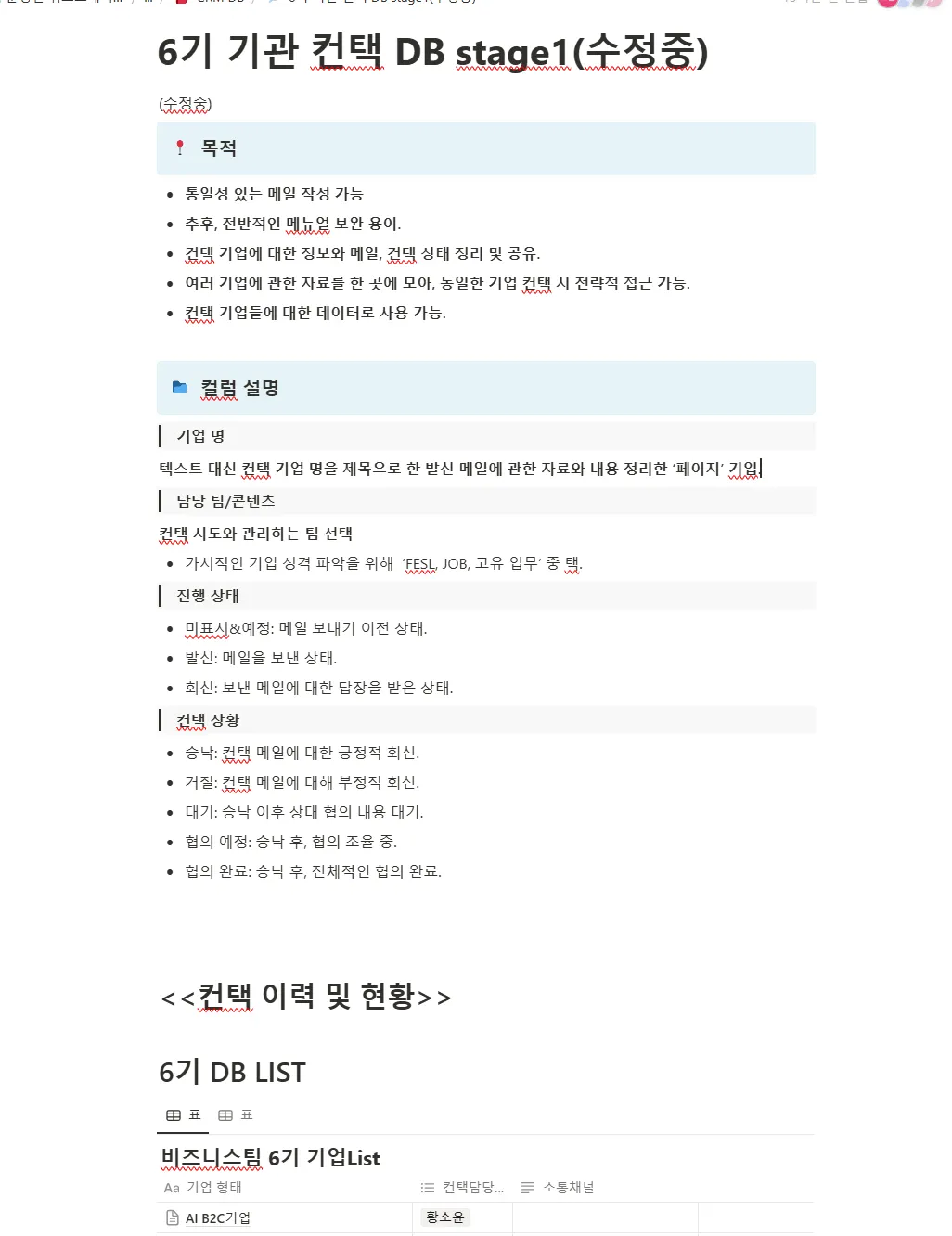 컨택 기관 리스트업을 완료하면 그 기관에 맞는 컨택 내용을 작성합니다.