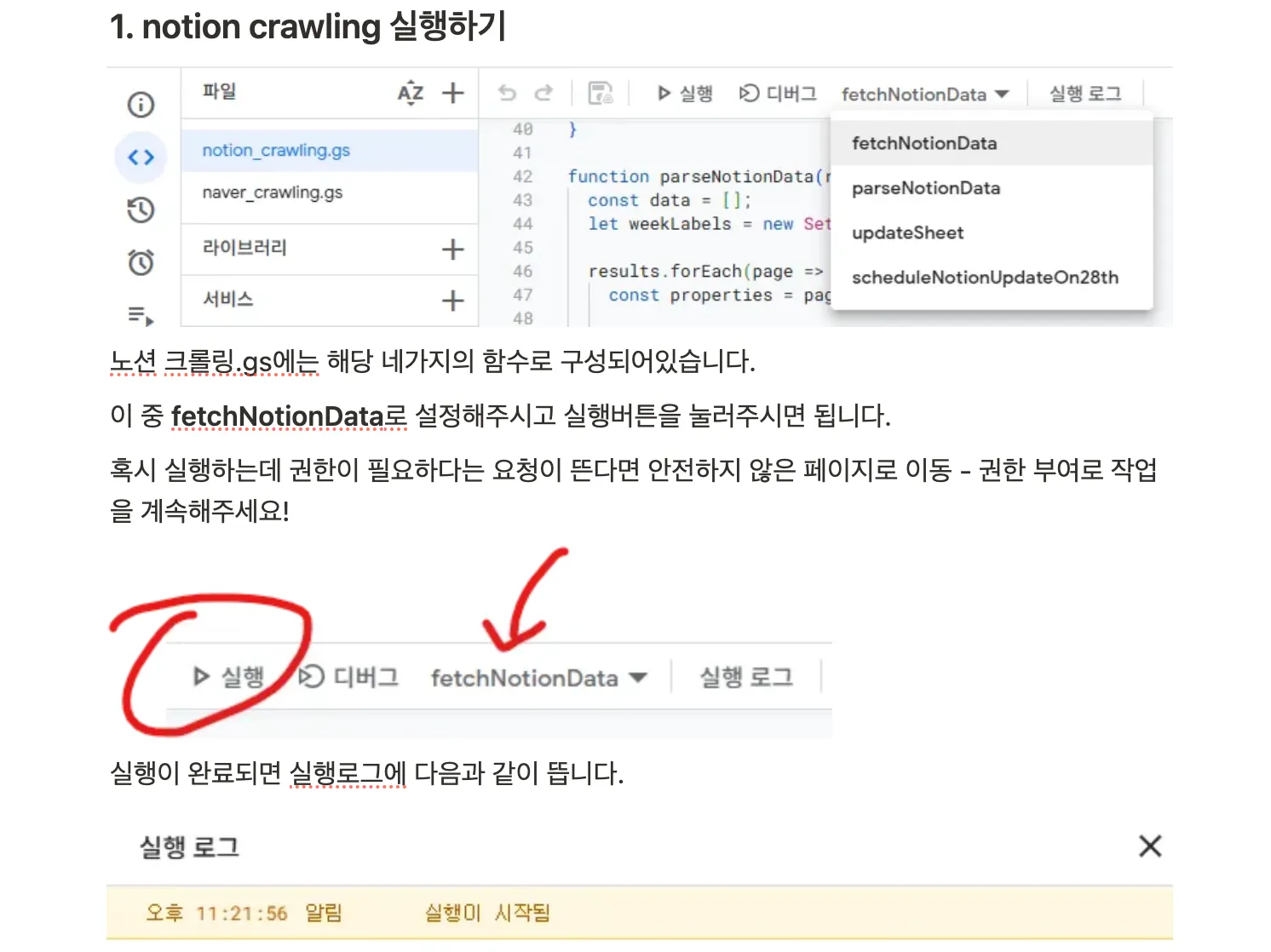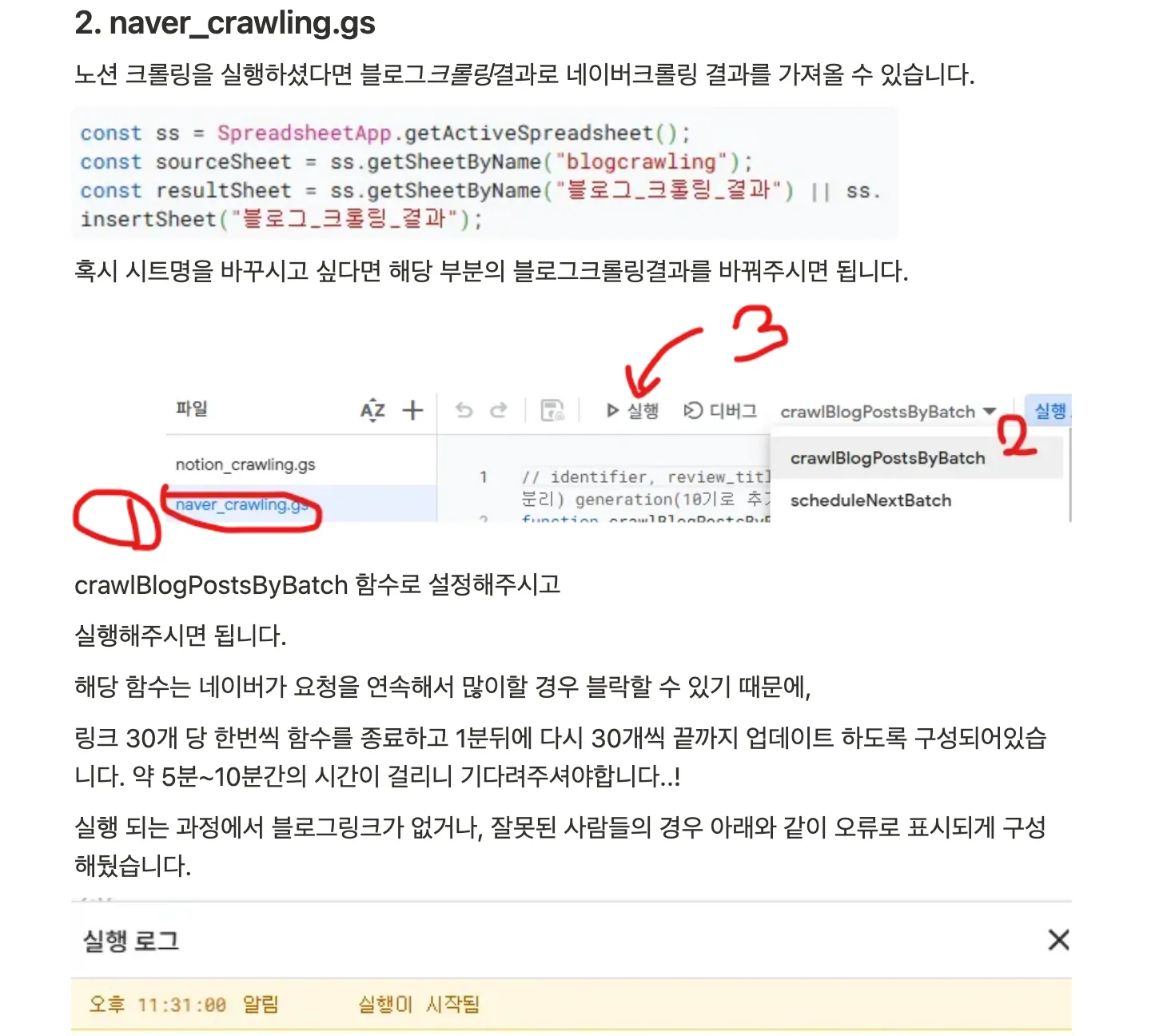 이전: Notion에서 링크 복사 → 코드 수동 실행 → 시트에 복붙
