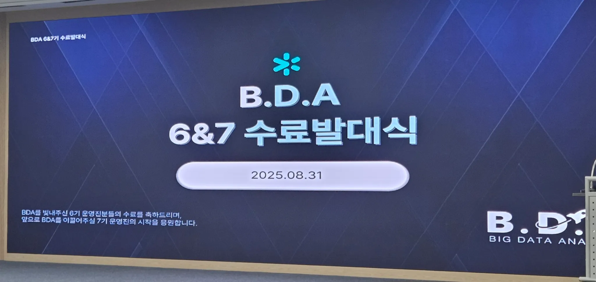 이렇게 BDA 운영진의 아름다운 끝, 새로운 시작의 날이 마무리 되었습니다.