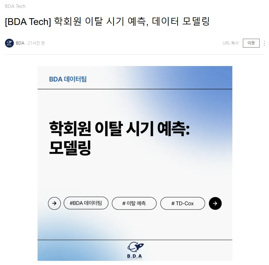 데이터팀은 네이버 블로그의 BDA Tech 섹션을 운영하며, 데이터 분석과 관련된 다양한 주제의 전문적인 콘텐츠를 제공합니다.