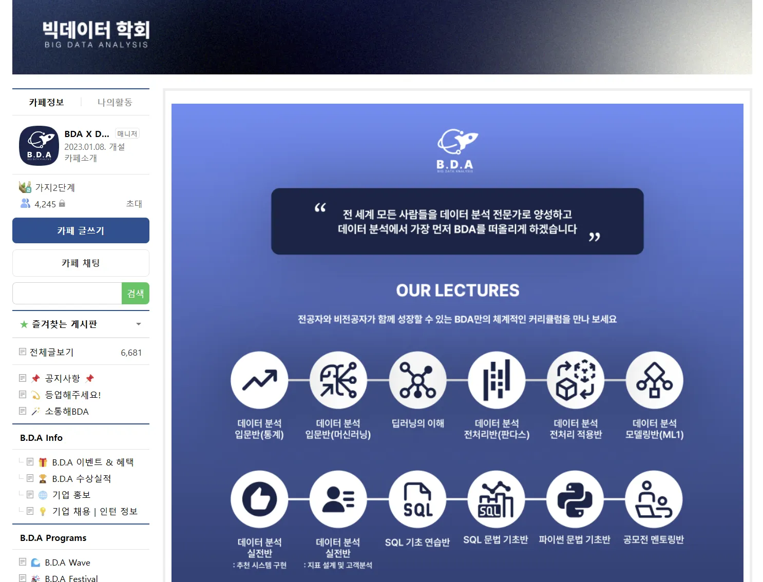 그 후 새로운 운영진과 학회원들의 가입을 유도하고 적절한 등급을 부여하며, 최종적으로 카페 활동 데이터를 분석하여 효과성을 평가합니다.