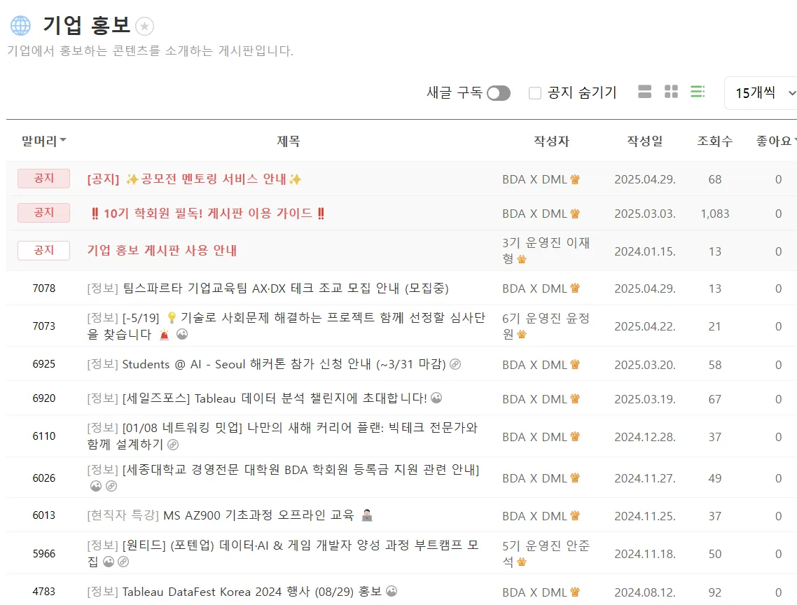 또한 상시 업무로는 카페 콘텐츠 업로드가 있습니다. 학회 내부 활동 공지와 외부 협력 기관의 홍보 자료 요청을 받아 적절한 게시판에 신속하게 업로드하고 관리함으로써 학회원들에게 유용한 정보를 지속적으로 제공합니다.