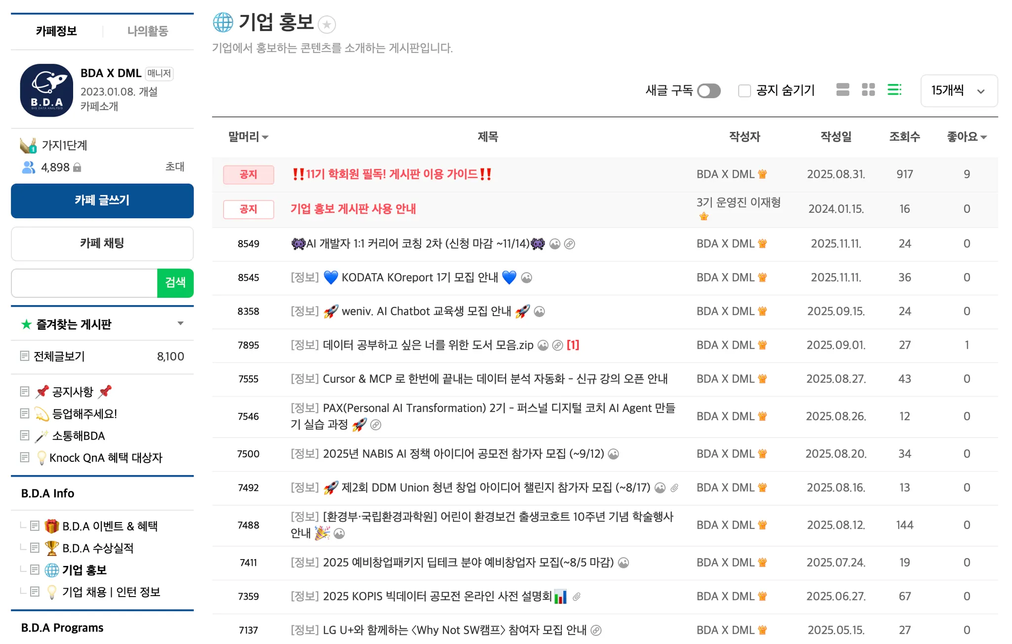 네이버 카페 기업 홍보 페이지