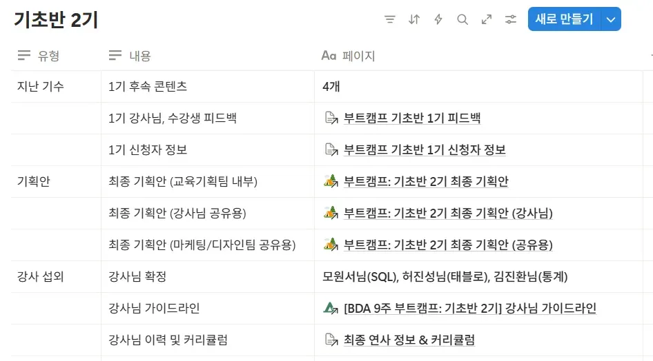 섭외 이후에는 강사님들과 계속 소통하며 수업 내용, 난이도, 실습 비중 등을 조정하고 커리큘럼을 구체화합니다.