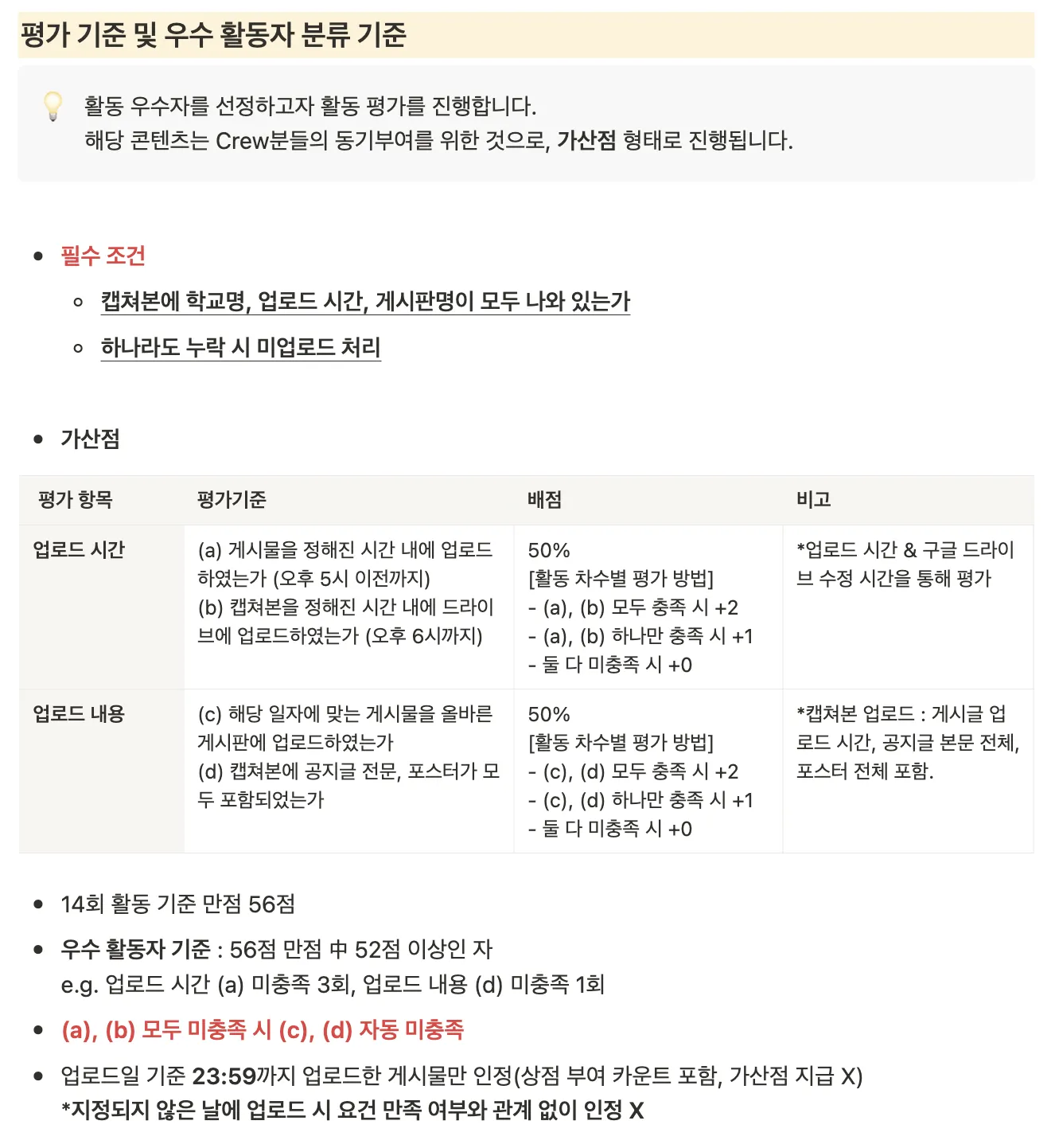 매 회차 업로드는 “동아리/학회 게시판”을 통해 진행되며, 캡처본 업로드까지 포함해 정해진 시간 내에 완료할 수 있도록 운영합니다!
