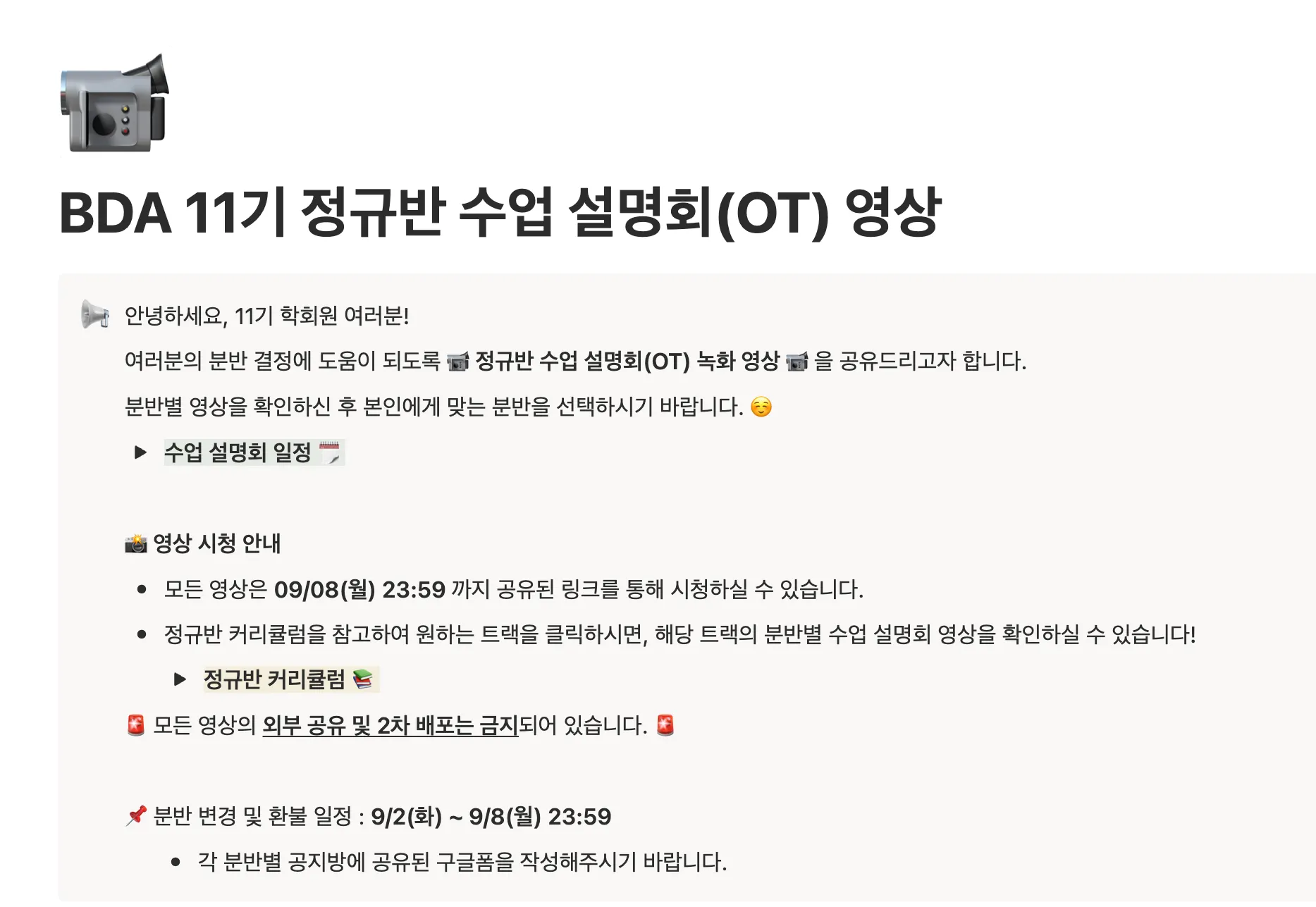 또한, BDA 홈페이지 내 각 분반 커리큘럼에 대한 설명 및 강의계획서 등을 작성하여 학회원의 분반 선택을 돕습니다.
