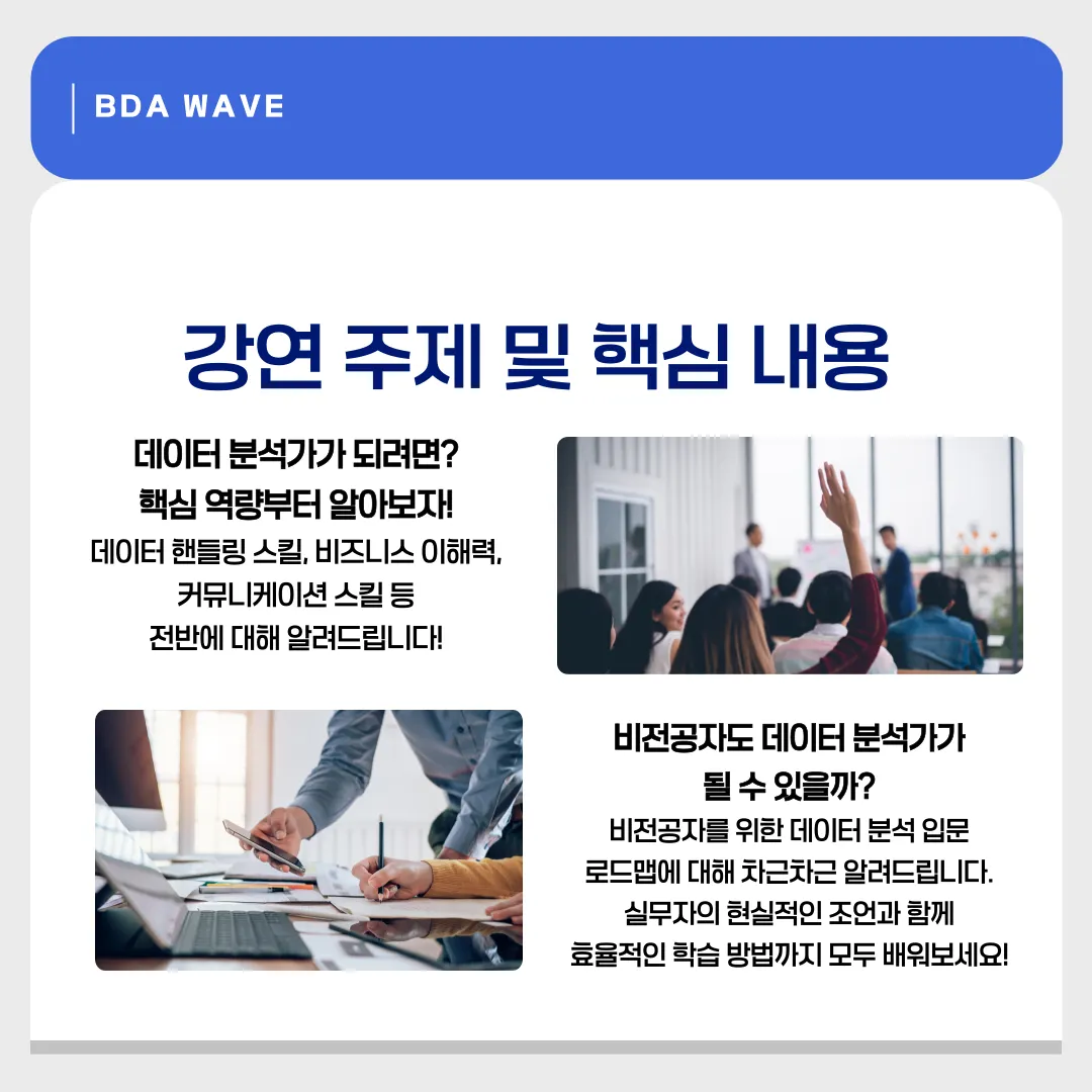 BDA WAVE는 BDA에서 진행하는 현직자 강연의 새로운 명칭이며,