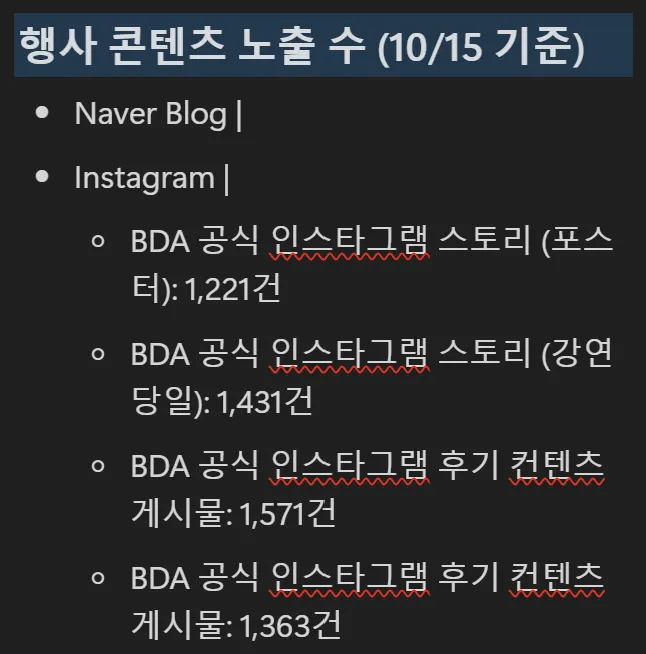 이후 행사를 진행하고 만족도 조사 보고서를 포함한 후기 콘텐츠 공유 등의 행사 후 마무리 프로세스가 진행됩니다.