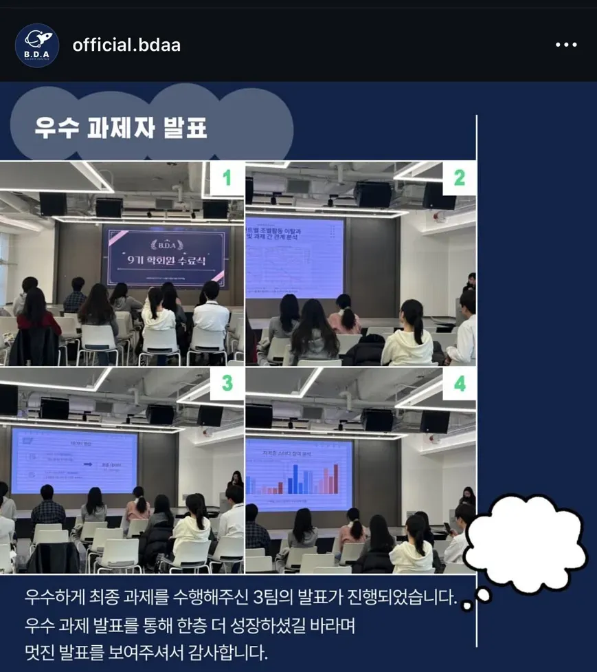 학회원 학술제&수료식 후기 콘텐츠 인스타그램 업로드