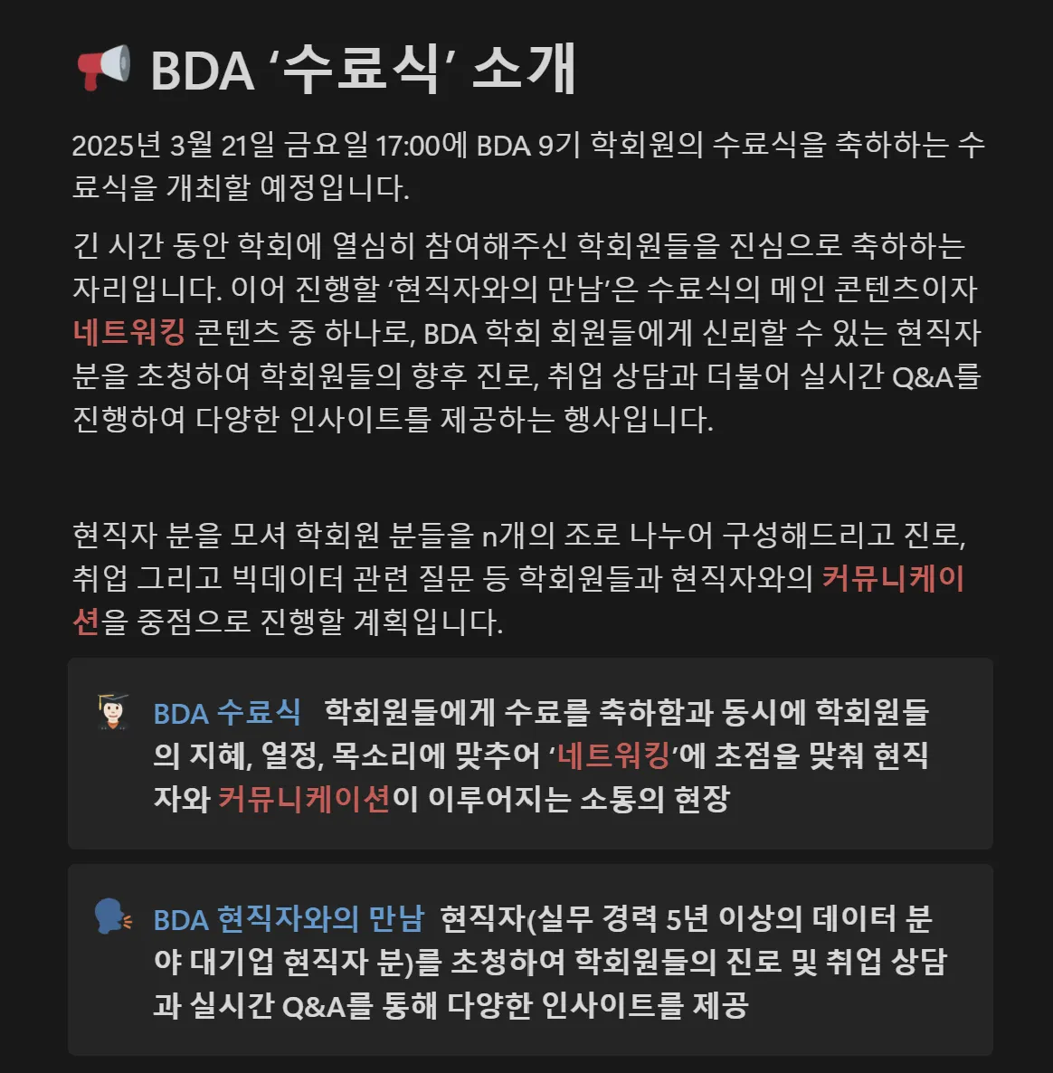 이 행사를 통해 학회원은 자신의 성장을 축하받고, 현업에 종사하는 전문가들과 네트워킹 기회를 얻게 됩니다.