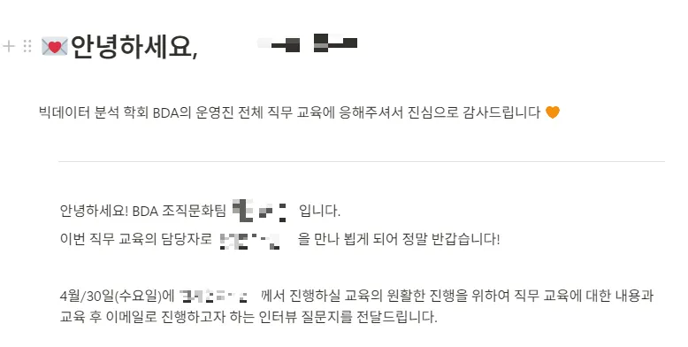직무교육 연사님과의 컨택 후 보내는 초대장
