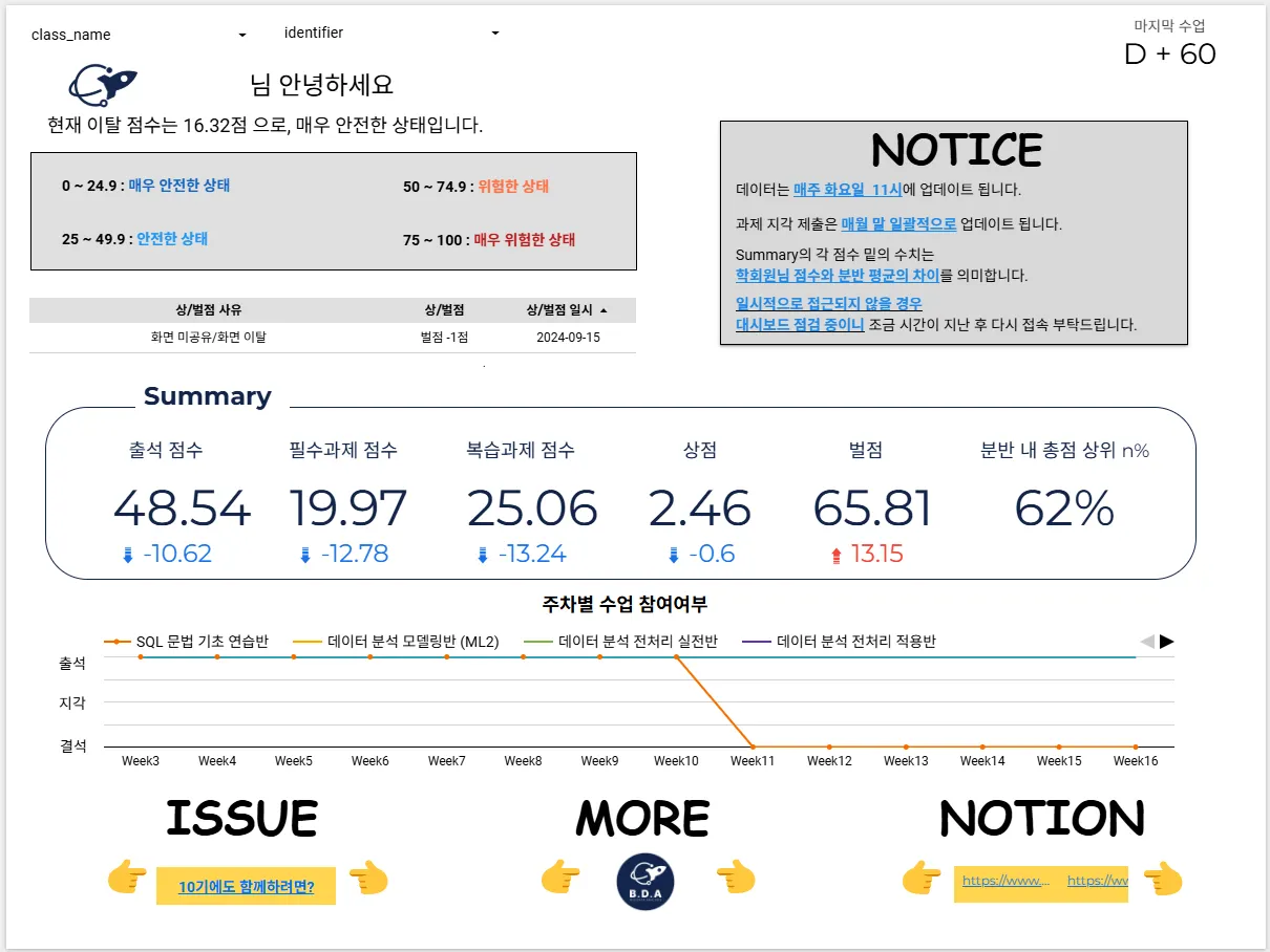 대시보드는 학회원 또는 운영진이 직접 활용하며, 정보의 효율적이고 효과적인 시각화가 중요합니다.