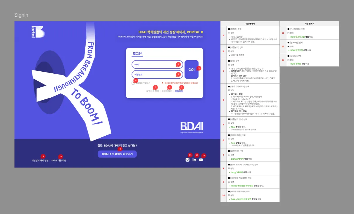 BDAI와 연결지어 Portal B라는 이름으로 브랜딩을 진행함으로써 웹페이지의 정체성을 형성했습니다.