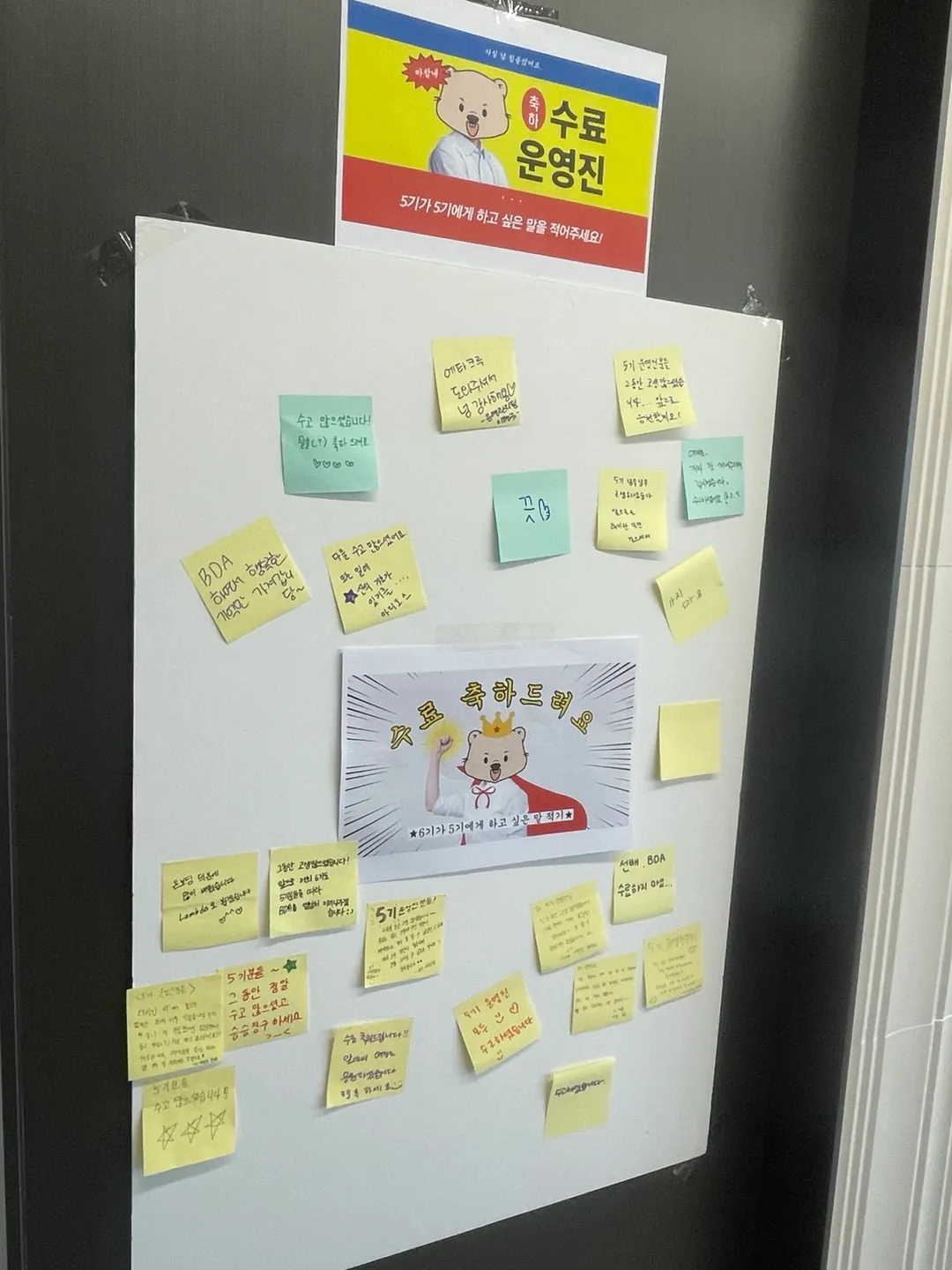 수료발대식 중간중간 벽꾸미기 이벤트로, 5기 운영진이 5기, 6기 운영진에게,