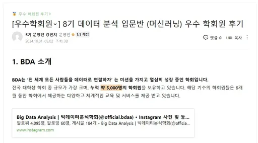 BDA 공식 네이버 카페를 관리하고 소통해요.