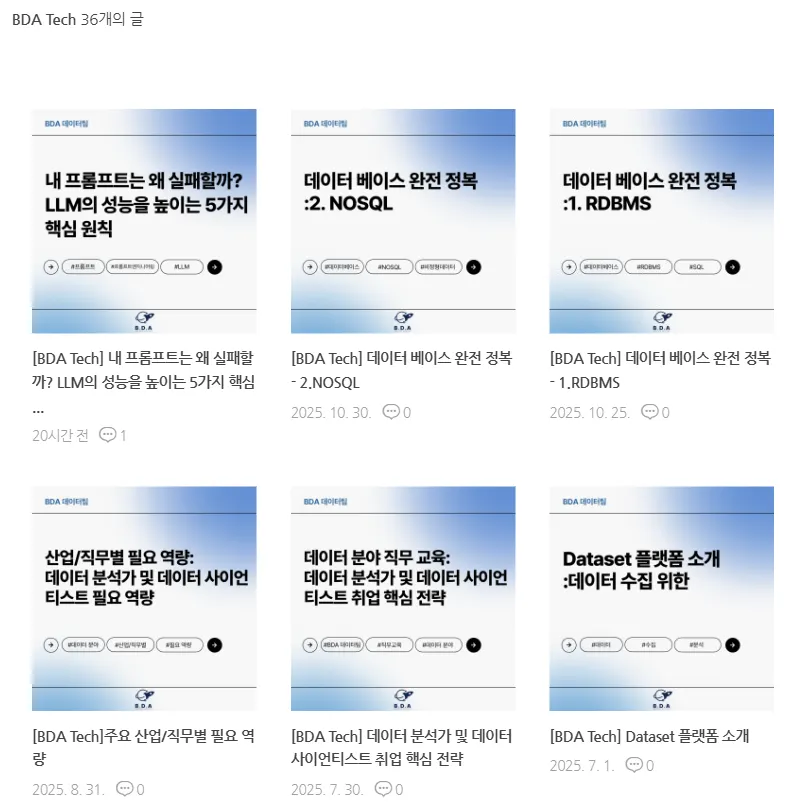 “BDA Tech 콘텐츠”는 데이터팀이 직접 기획하고 제작하는 기술 기반 학습 자료입니다.