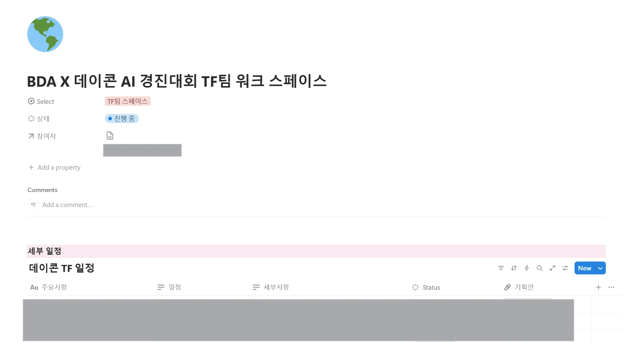 대회 기획 및 진행을 위한 협업 TF 워크 스페이스