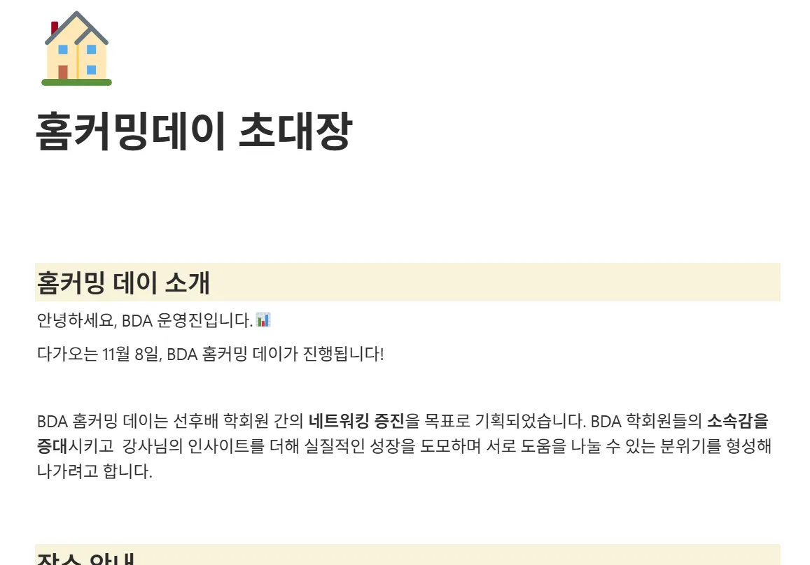 또한 학회원들이 BDA 활동을 더 깊이 이해하고 서로의 경험을 나눌 수 있도록, 프로그램 구성·일정·장소·전체 진행 구조까지 모두 주도적으로 설계했습니다.