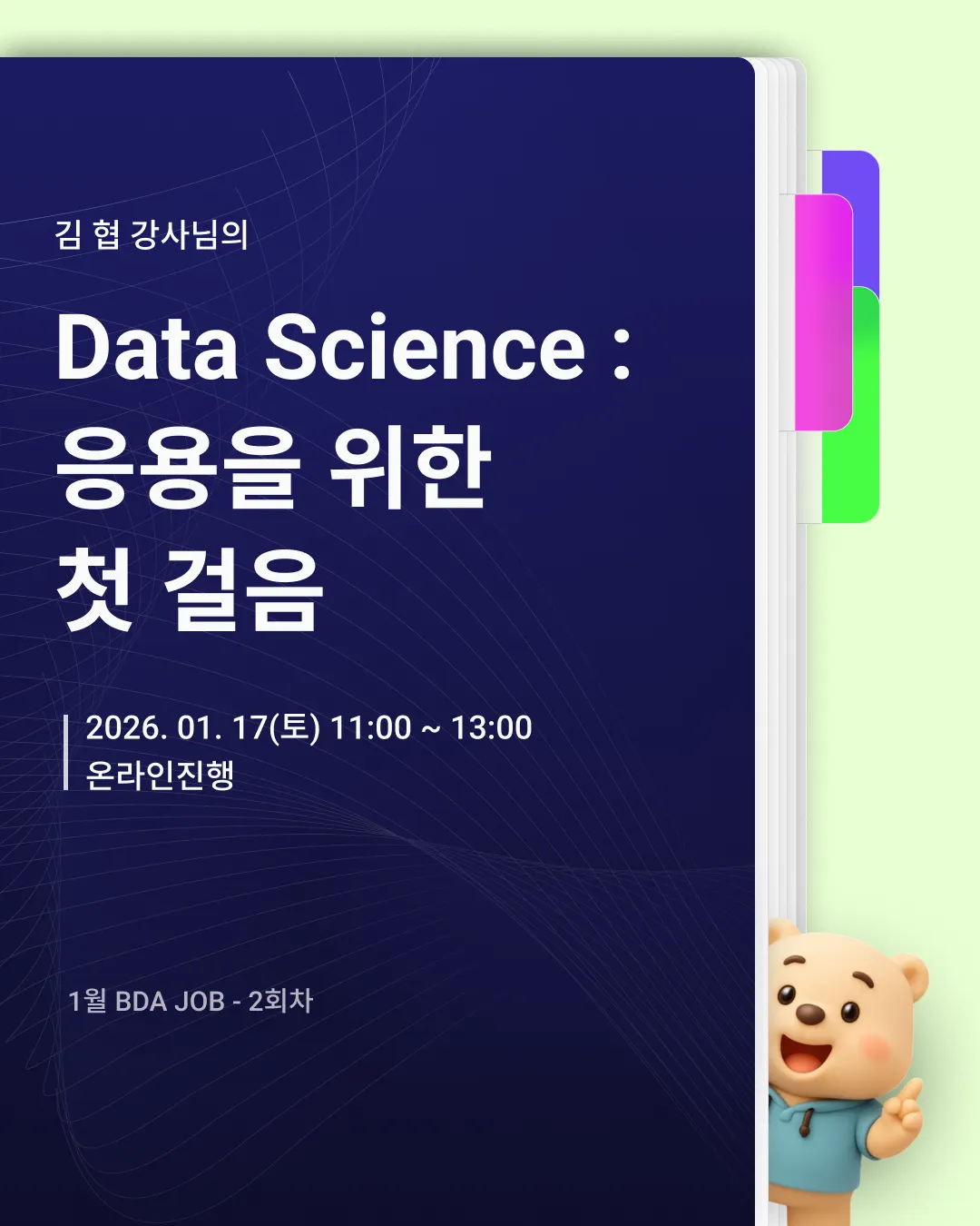 1월 BDAI JOB의 두 번째 강연인 Data Science : 응용을 위한 첫 걸음 강연이 진행됩니다.