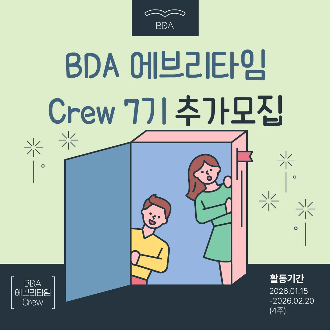 B.D.A.I에서 이뤄질 행사의 홍보와 바이럴을 함께 진행할 에브리타임 Crew 지인분들을 모집합니다.