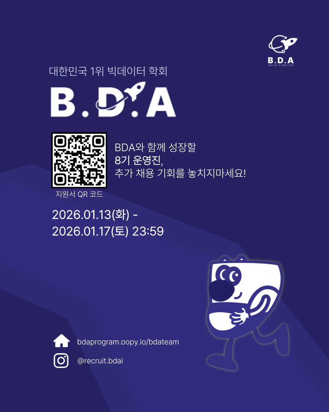 모집 기간 내에 아래 BDA TEAM 페이지에 있는 구글폼을 작성해 주세요!