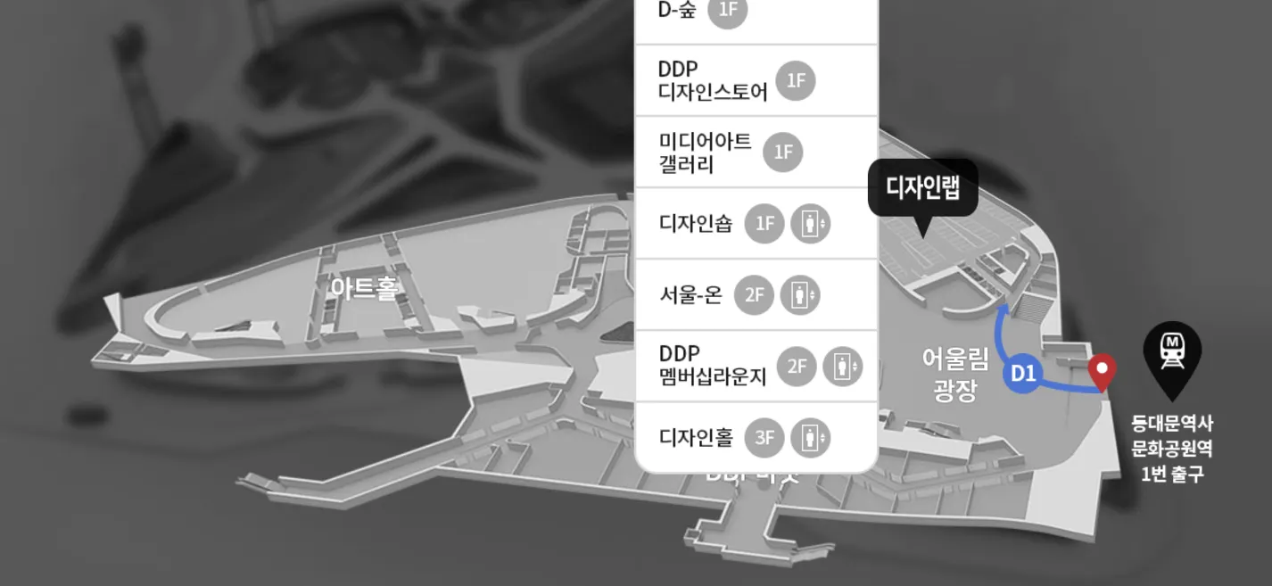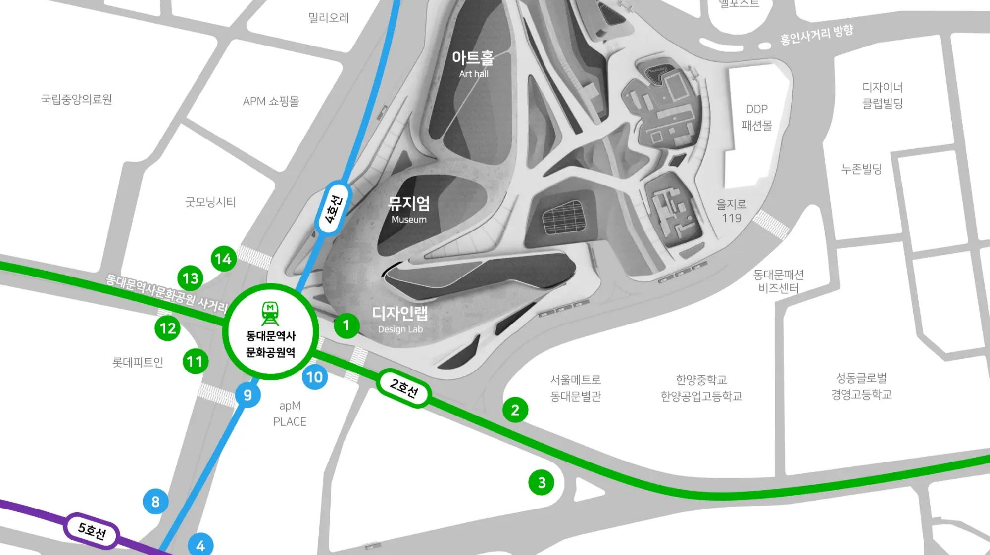동대문역사문화공원역 1번 출구에서 우측 방향으로 100미터